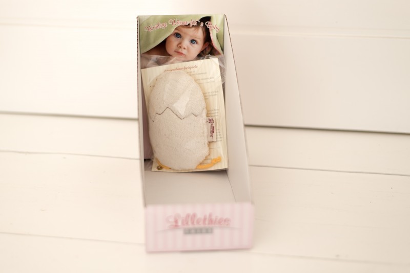 Kleiner Aufsteller als hübsche Verkaufshilfe für Babykissen und Accessoires.