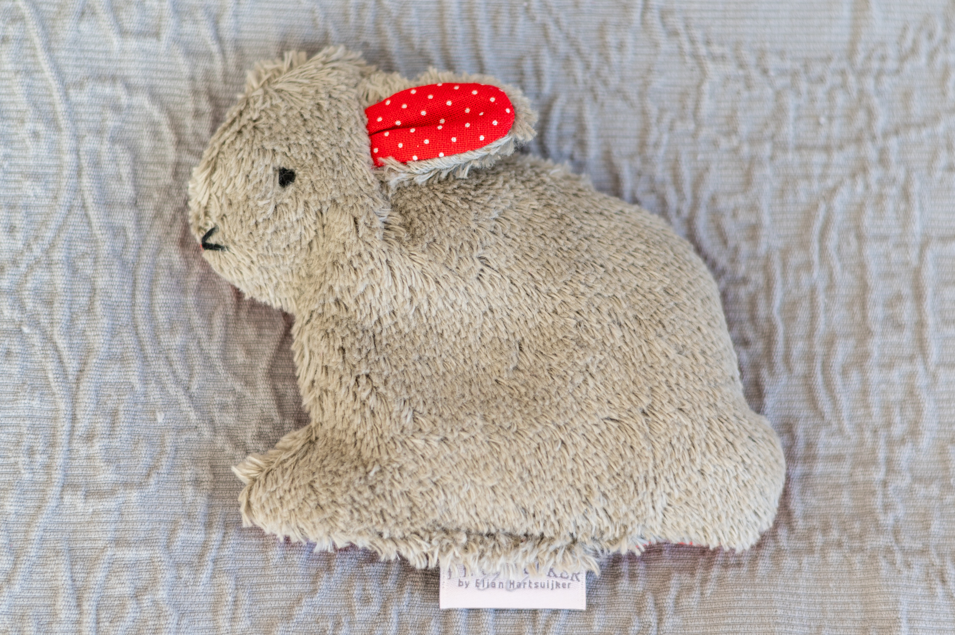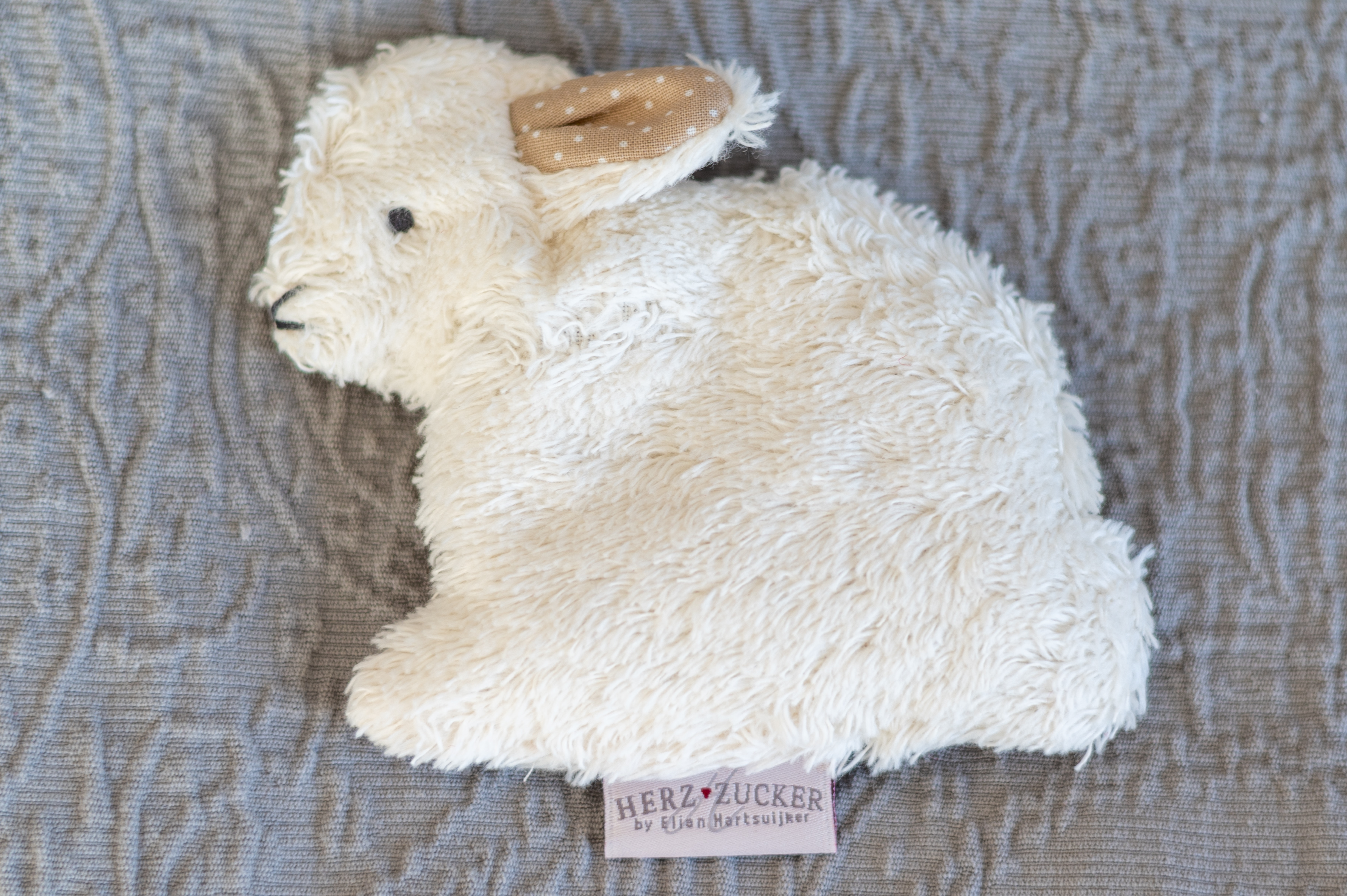 Babykissen Hennes der Hase mit Traubenkernfüllung - Bio Plüsch