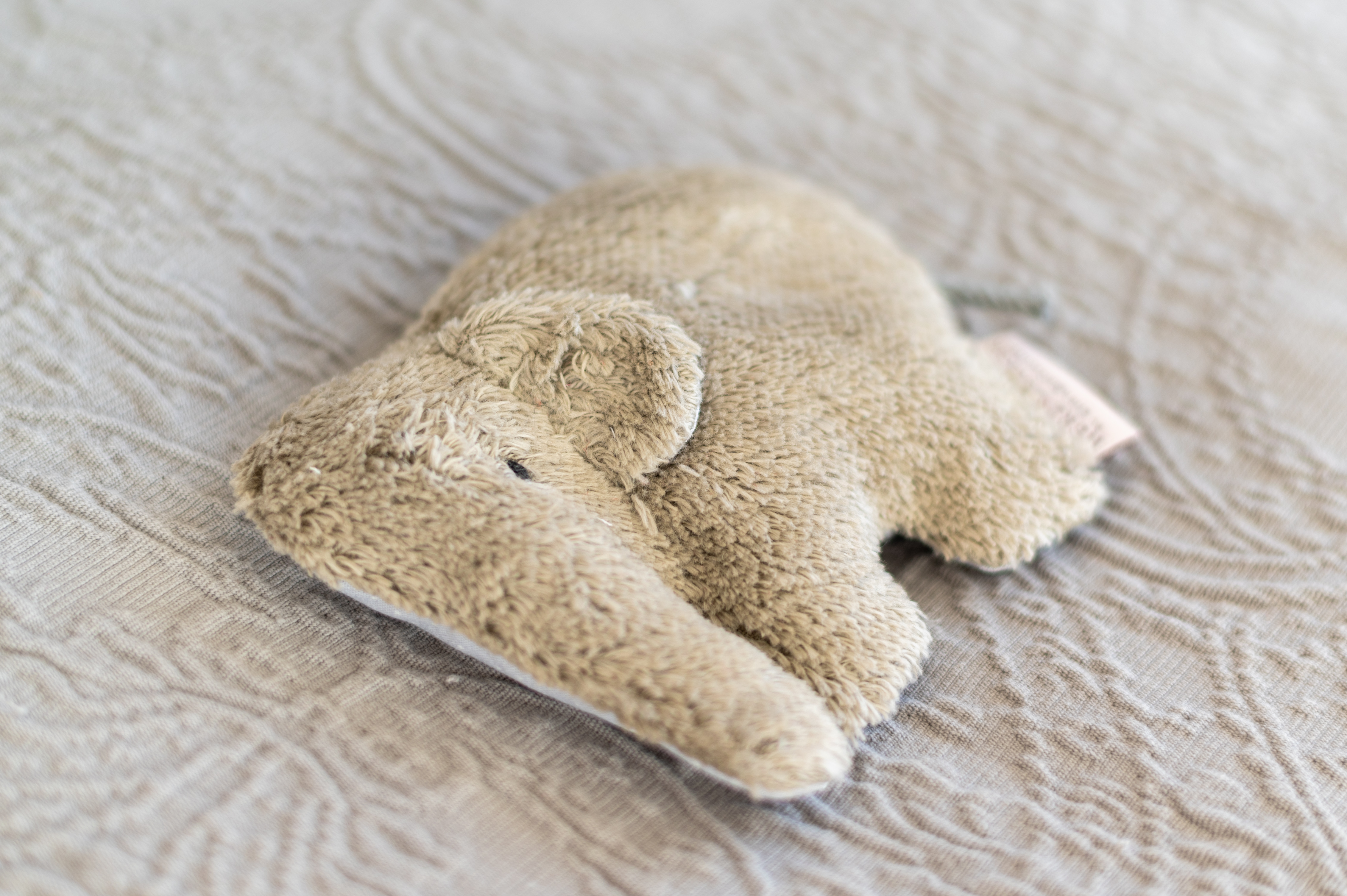 Babykissen Ole der Elefant mit Traubenkernfüllung - Bio Plüsch