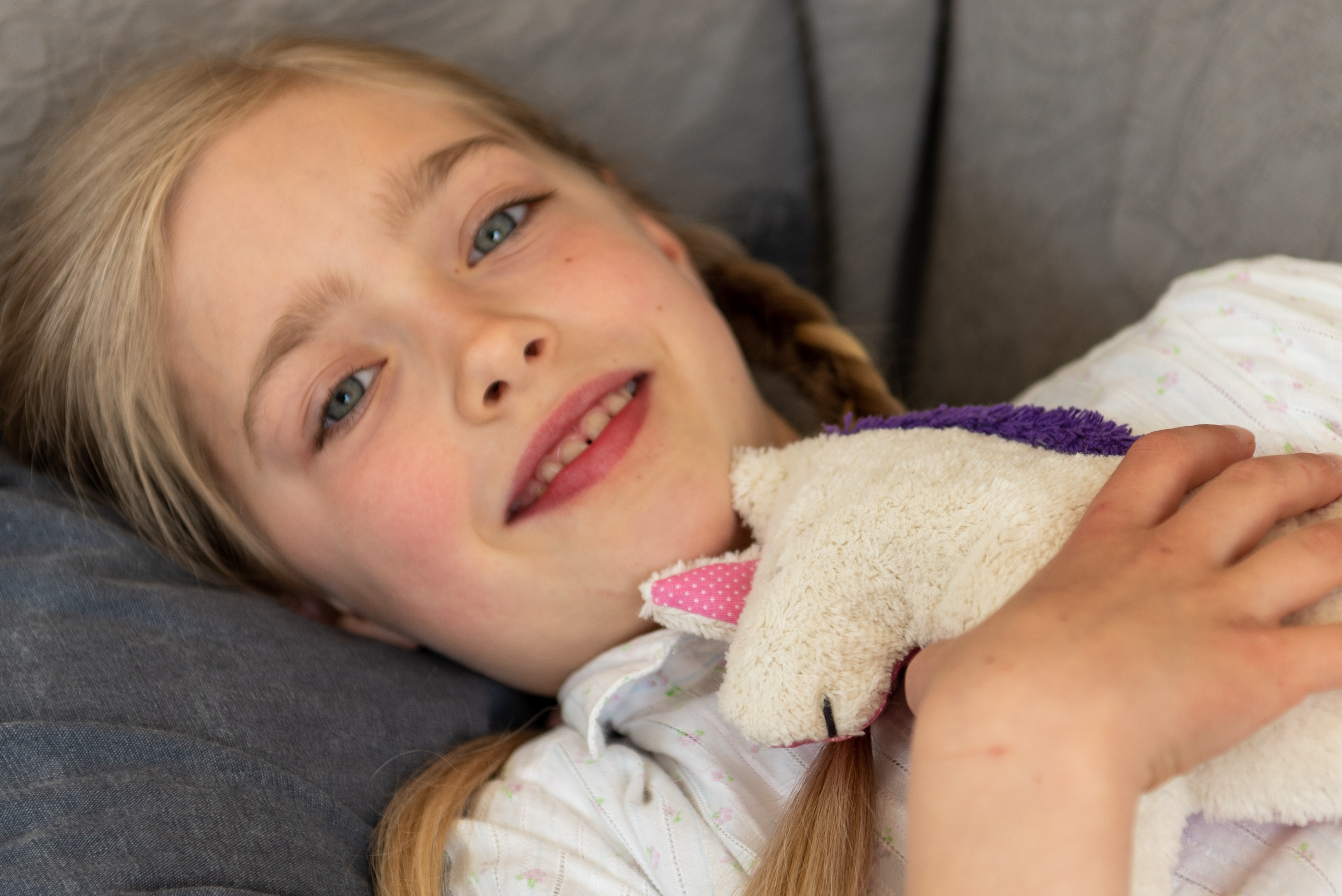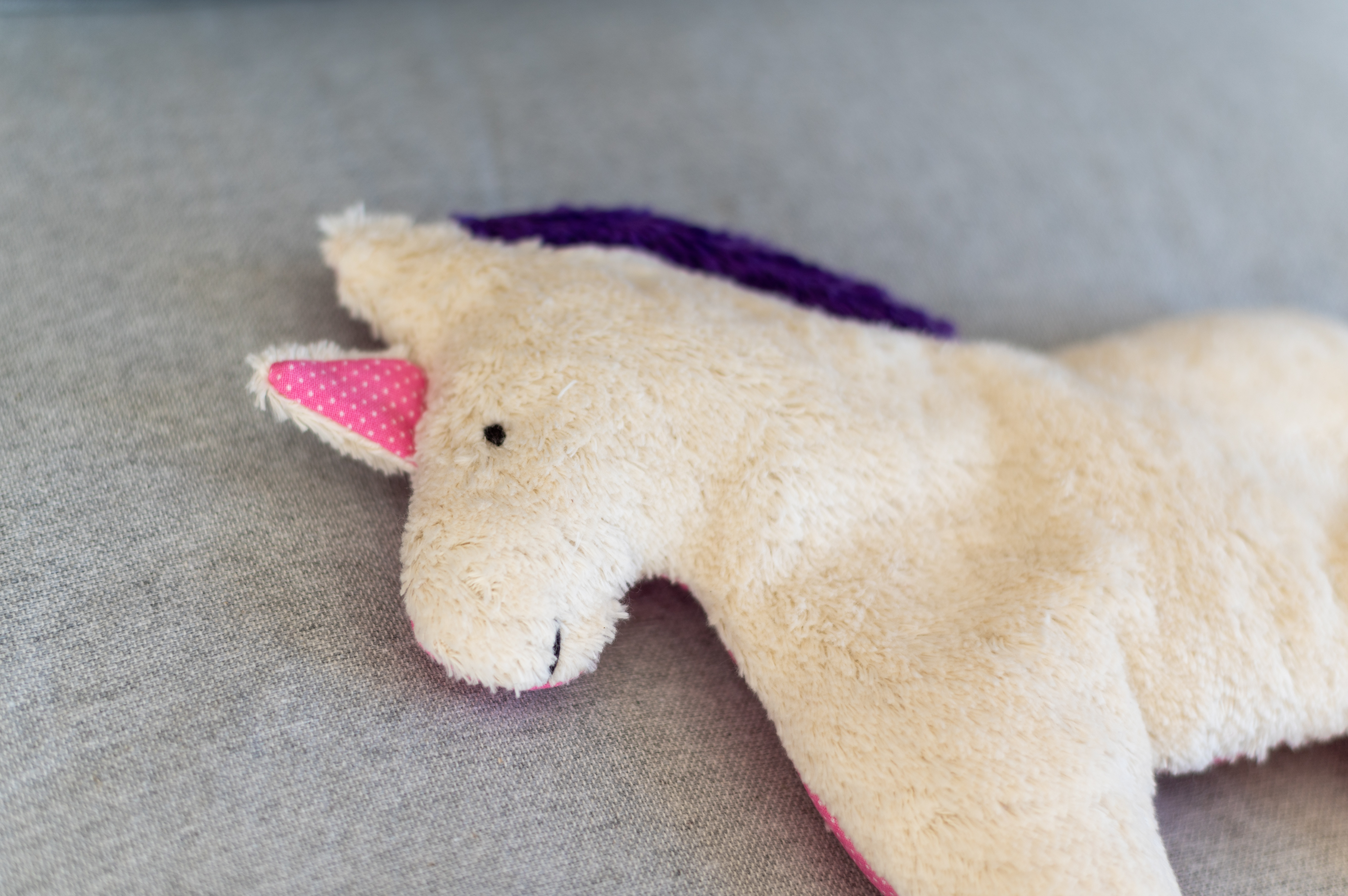 Kinderkissen Elin das Einhorn mit Traubenkernfüllung - Bio Plüsch