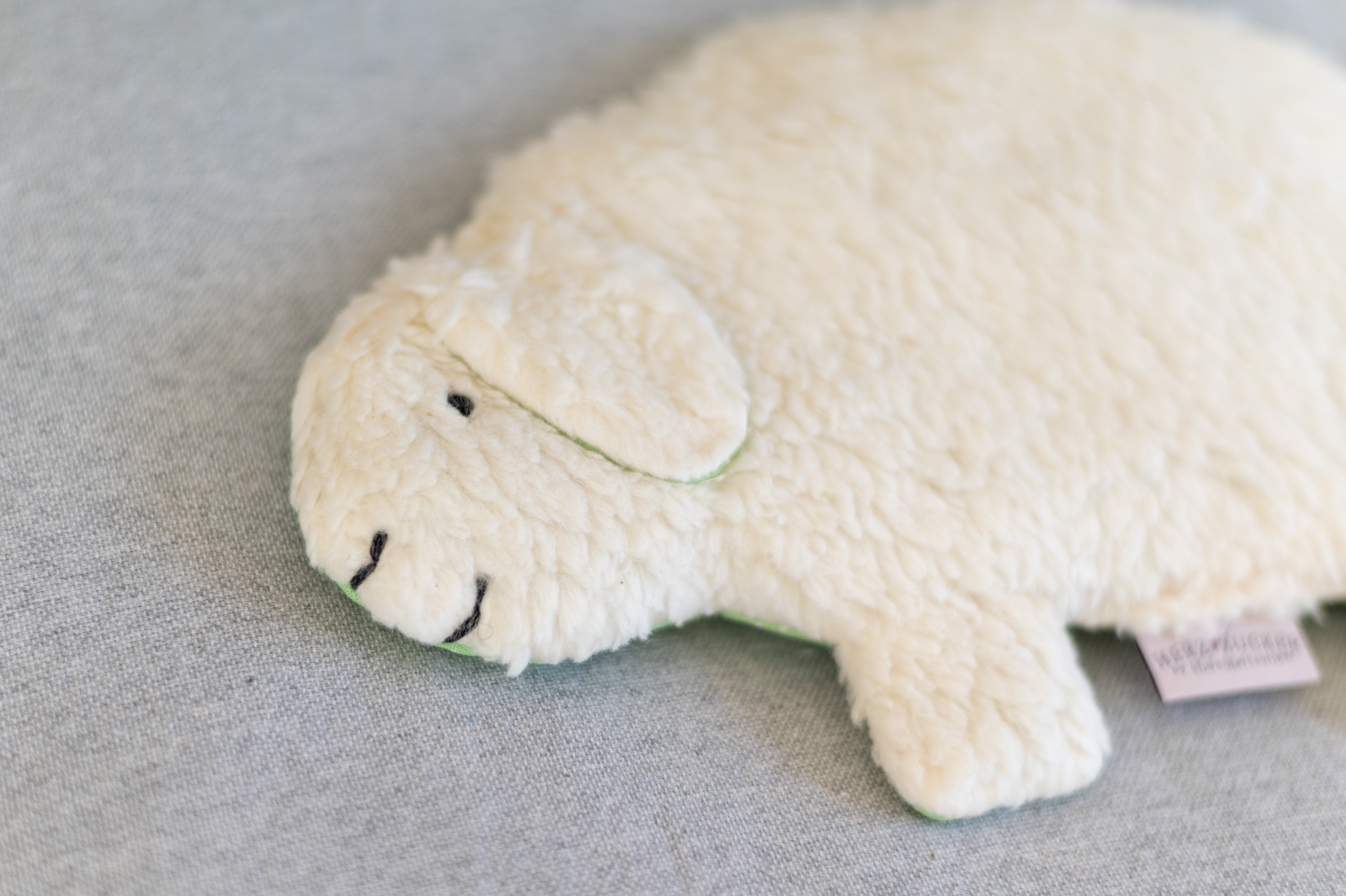 Kinderkissen Jette das Schaf mit Traubenkernfüllung - Bio Plüsch