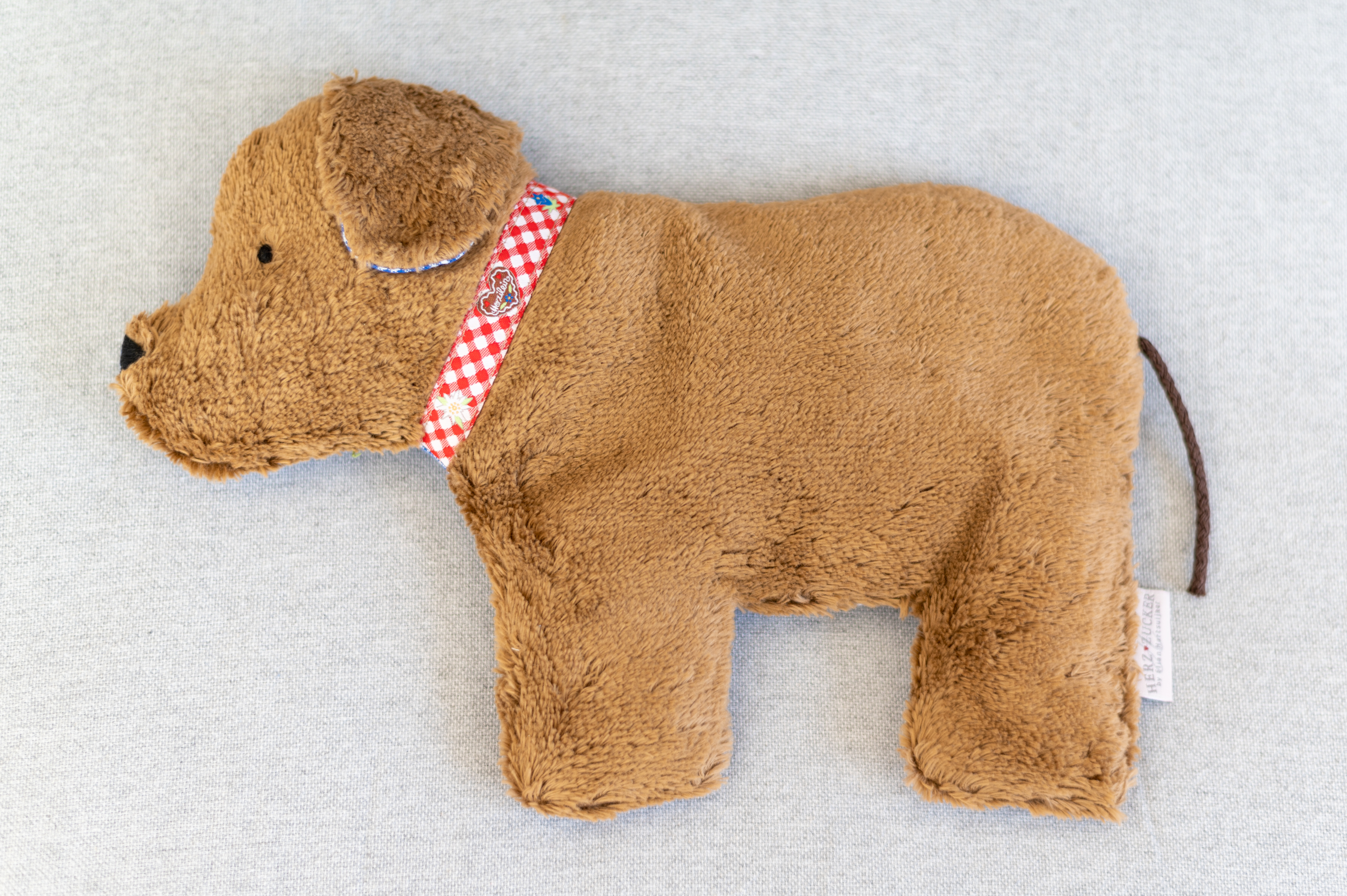 Kinderkissen Lenni der Hund mit Traubenkernfüllung - Bio Plüsch