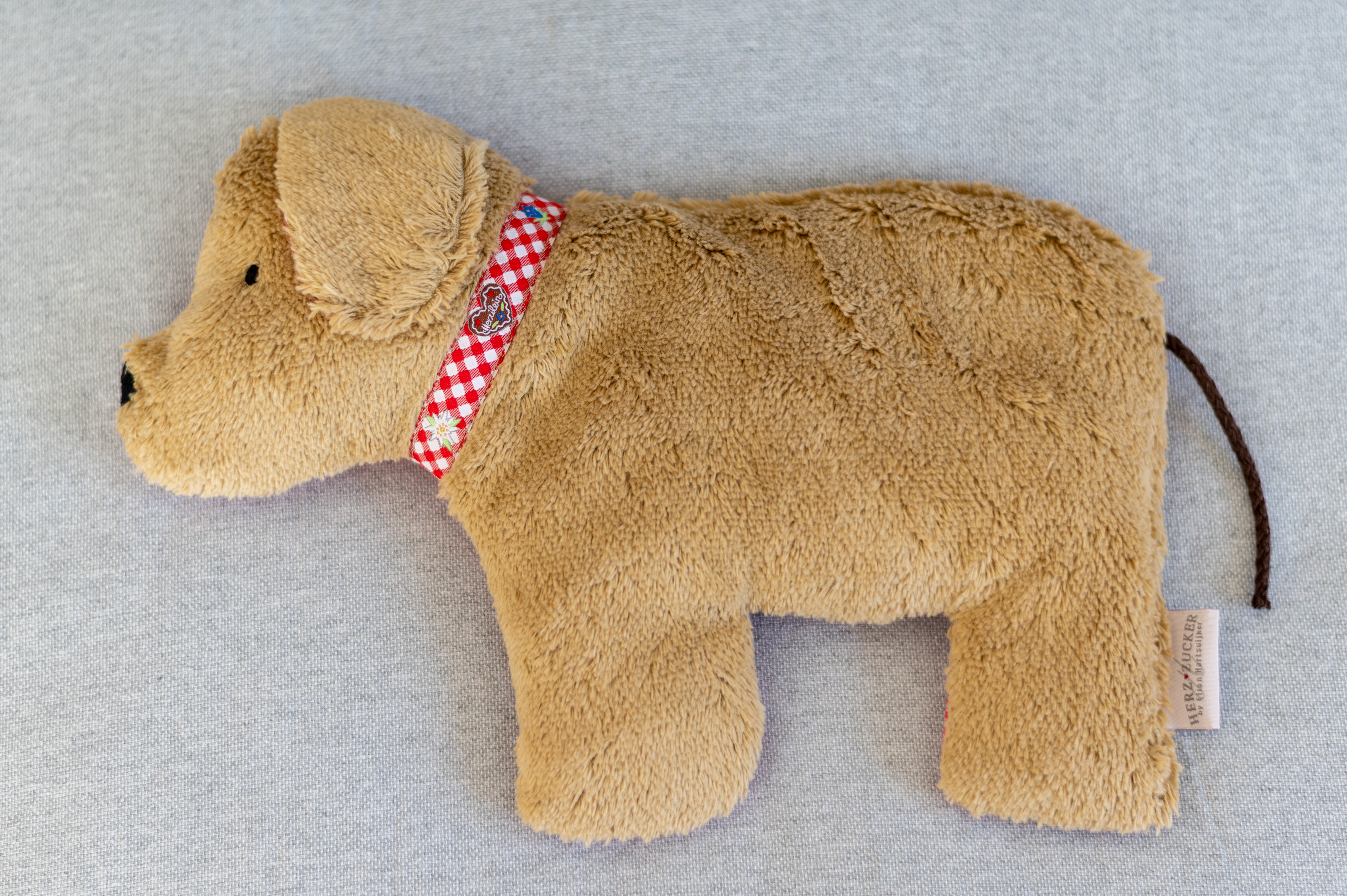 Produktinformationen "Kinderkissen Lenni der Hund mit Traubenkernfüllung - Bio Plüsch"