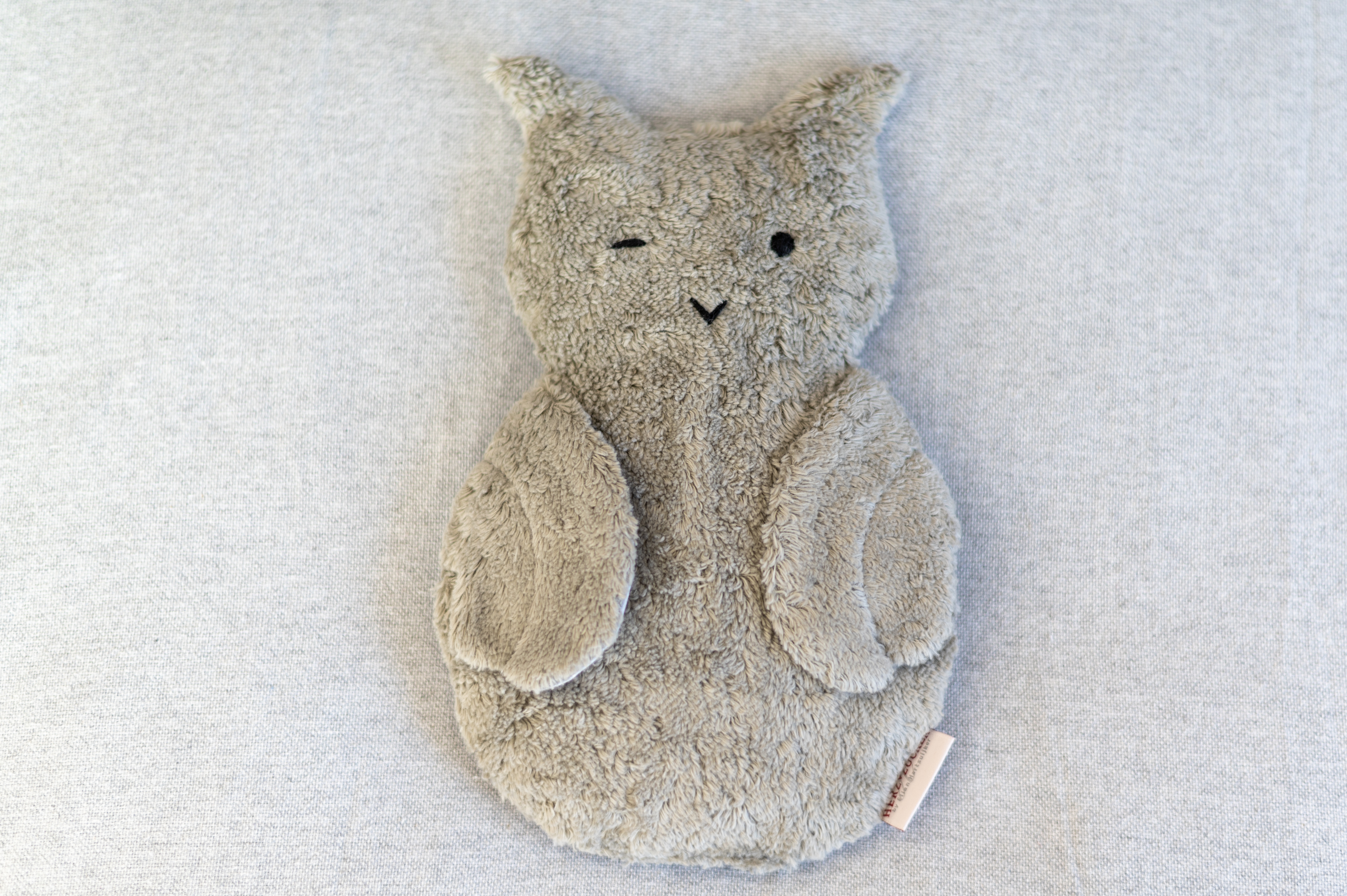 Kinderkissen Marlene die Eule mit Traubenkernfüllung - Bio Plüsch