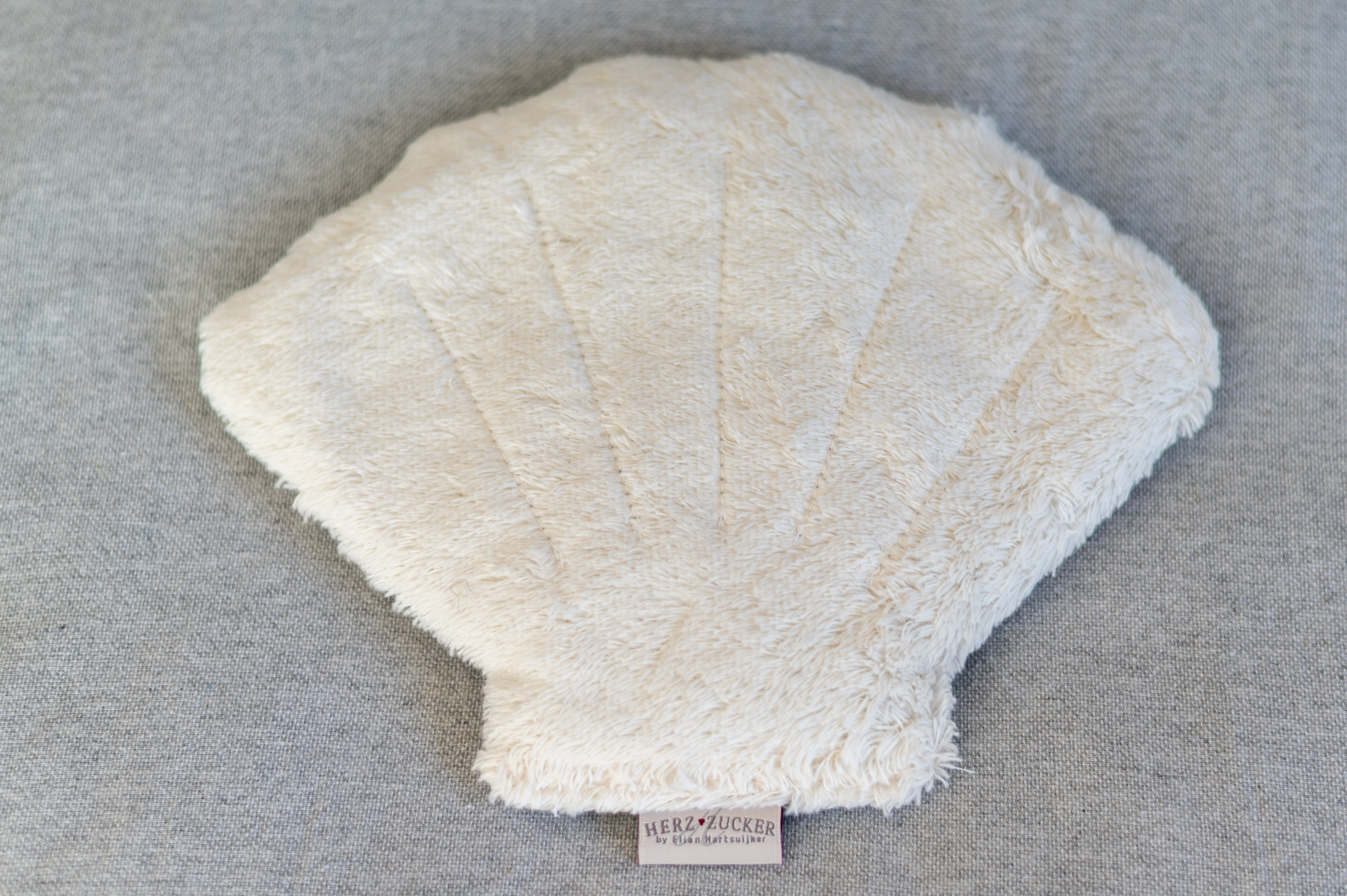Kinderkissen Mucki die Muschel mit Traubenkernfüllung - Bio Plüsch