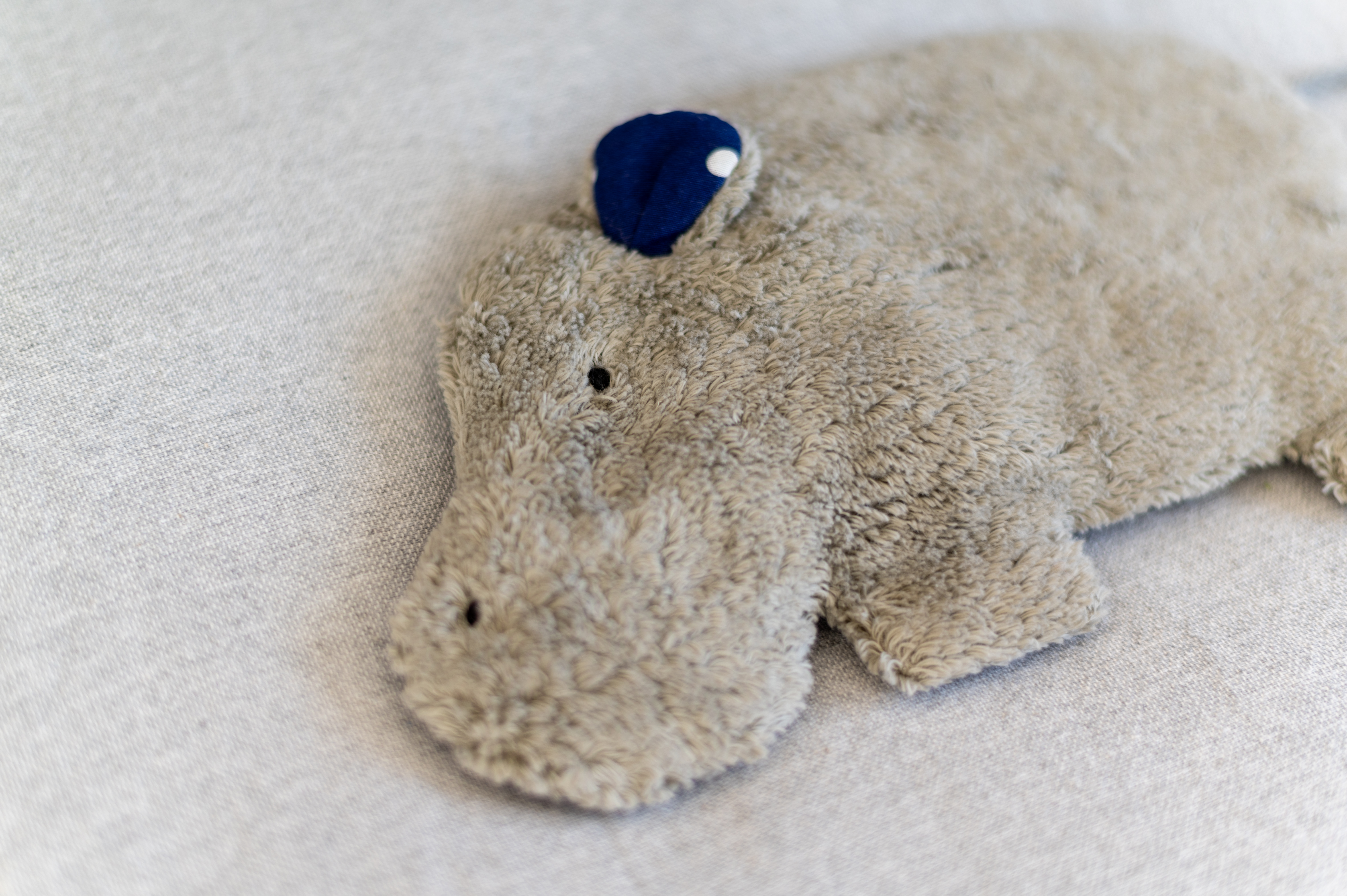 Produktinformationen "Kinderkissen Nils das Nilpferd mit Traubenkernfüllung - Bio Plüsch"