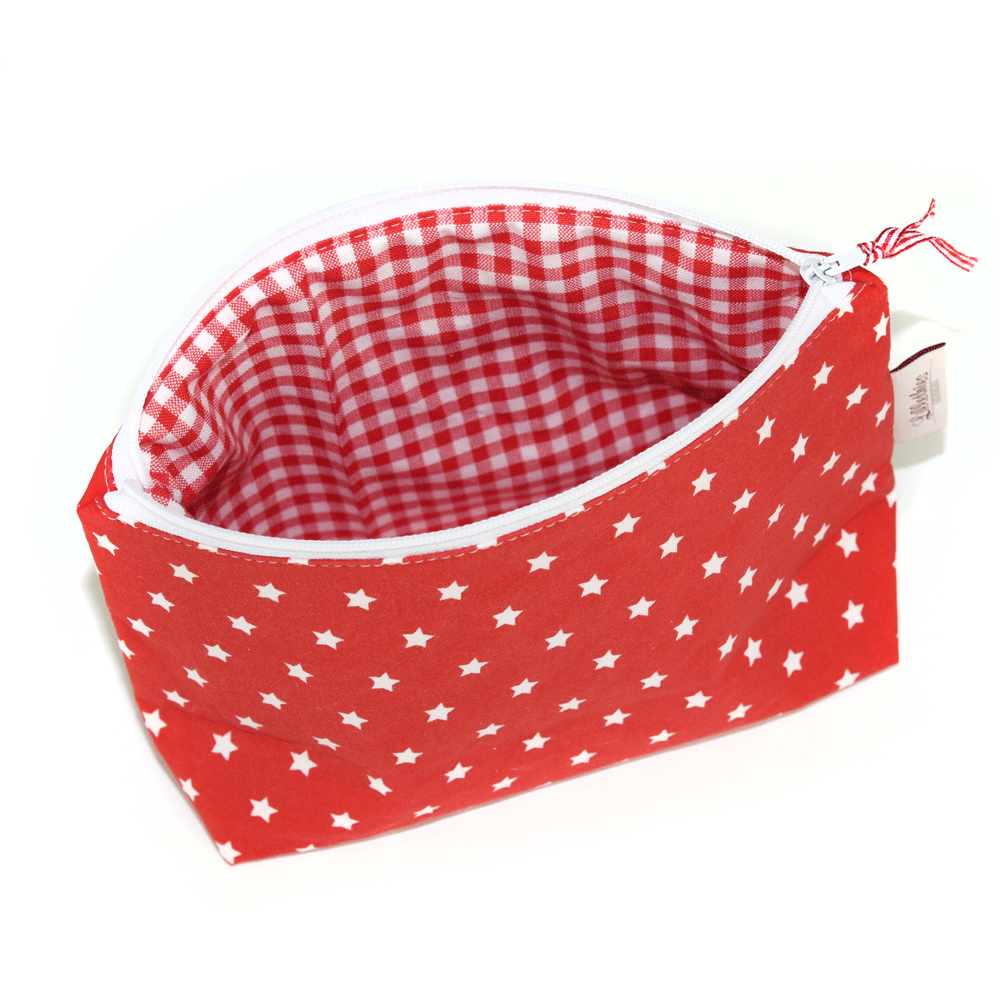 Praktische Kosmetiktasche mit Reißverschluss aus hochwertigem Westfalenstoff mit beschichteter Aussenseite. In Handarbeit gefertigt bietet diese wunderschöne Kosmetiktasche viel Platz für Ihre persönlichen Dinge des Alltags.