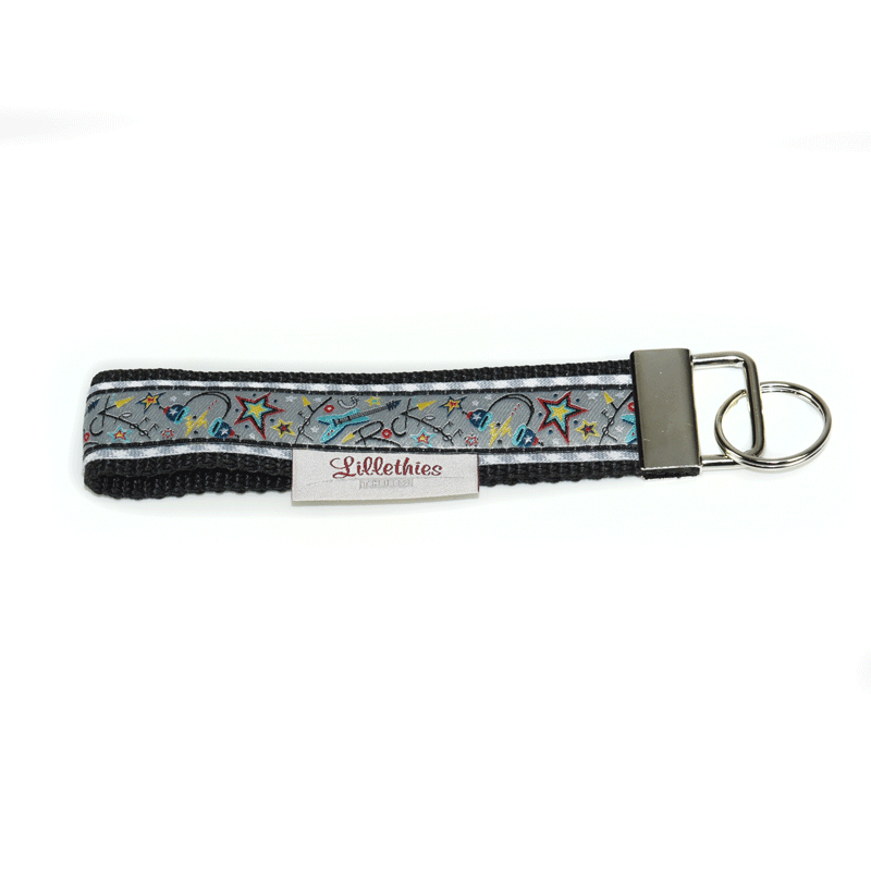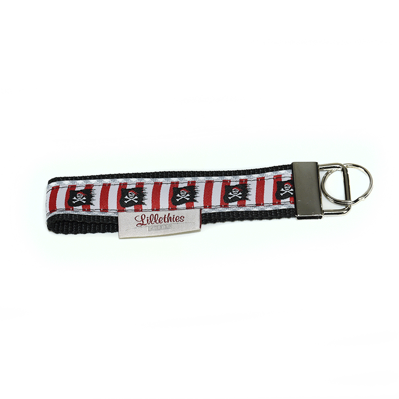 Handgefertigter Herzzucker Schlüsselanhänger aus hochwertigem Gurtband, Baumwollstoff und Webband mit lustigen Motiven. Befestigt an einer Metallschnalle mit Schlüsselring