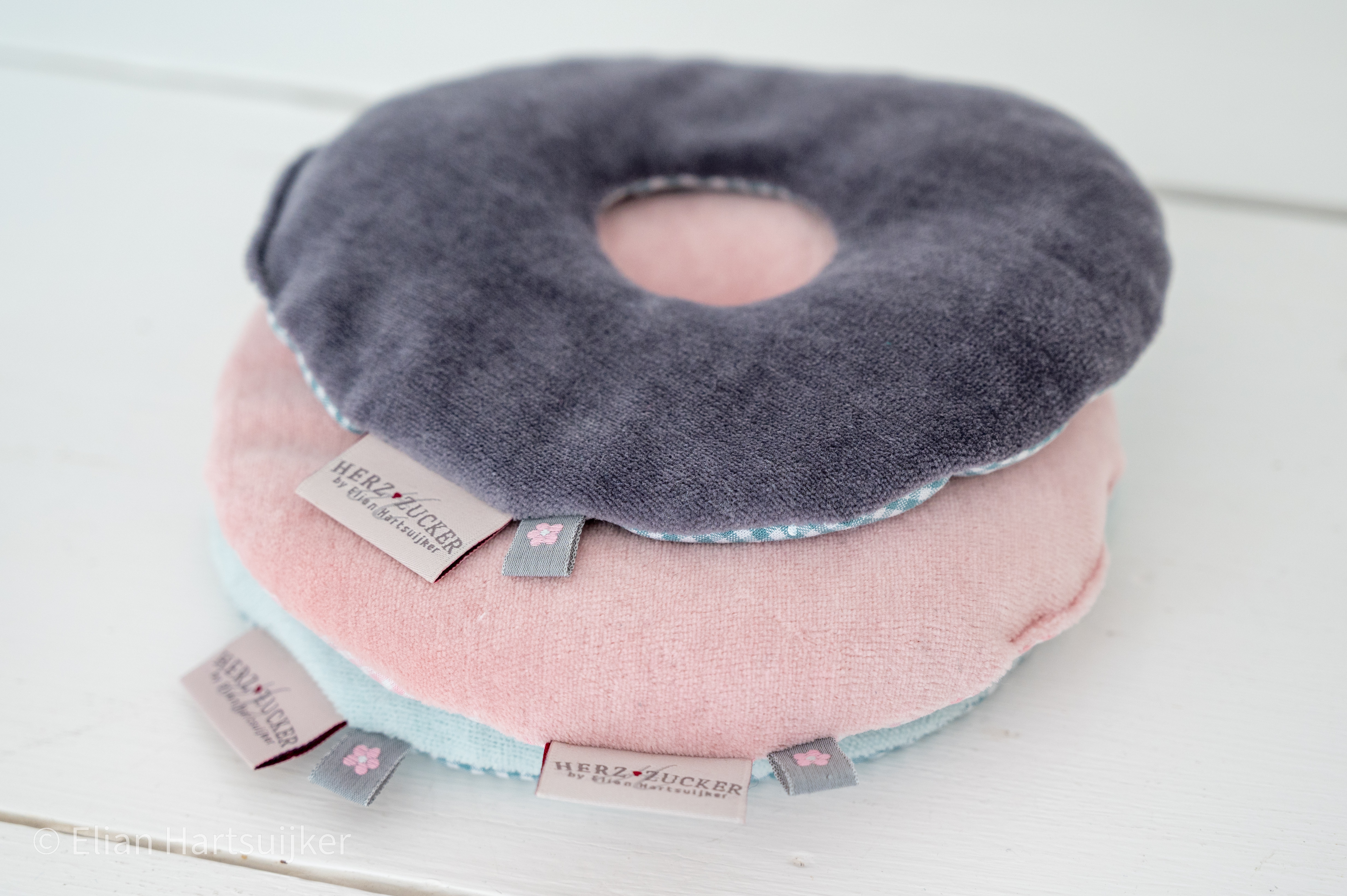 Dieser Stilldonut mit Traubenkernfüllung habe ich mit viel Liebe und Sorgfalt entworfen. Sie ist aus weicher Bio Nickibaumwolle als "isolierende" Oberseite und mit feine Bio Baumwolle an der Unterseite.
