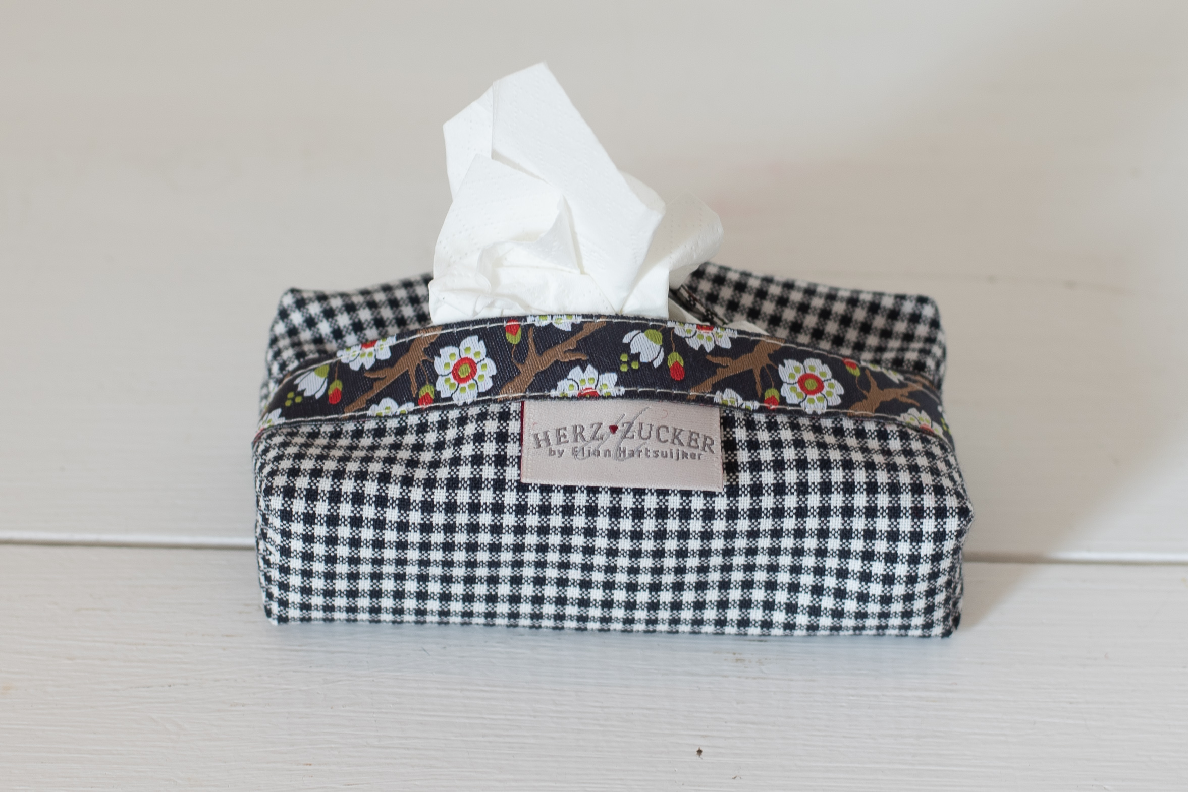 Handgefertigte Taschentücher-Hülle in verschiedenen Mustern. Ein schmuckes Täschchen für die Aufbewahrung von Taschentüchern. Das Etui wird inklusive Taschentücher geliefert.