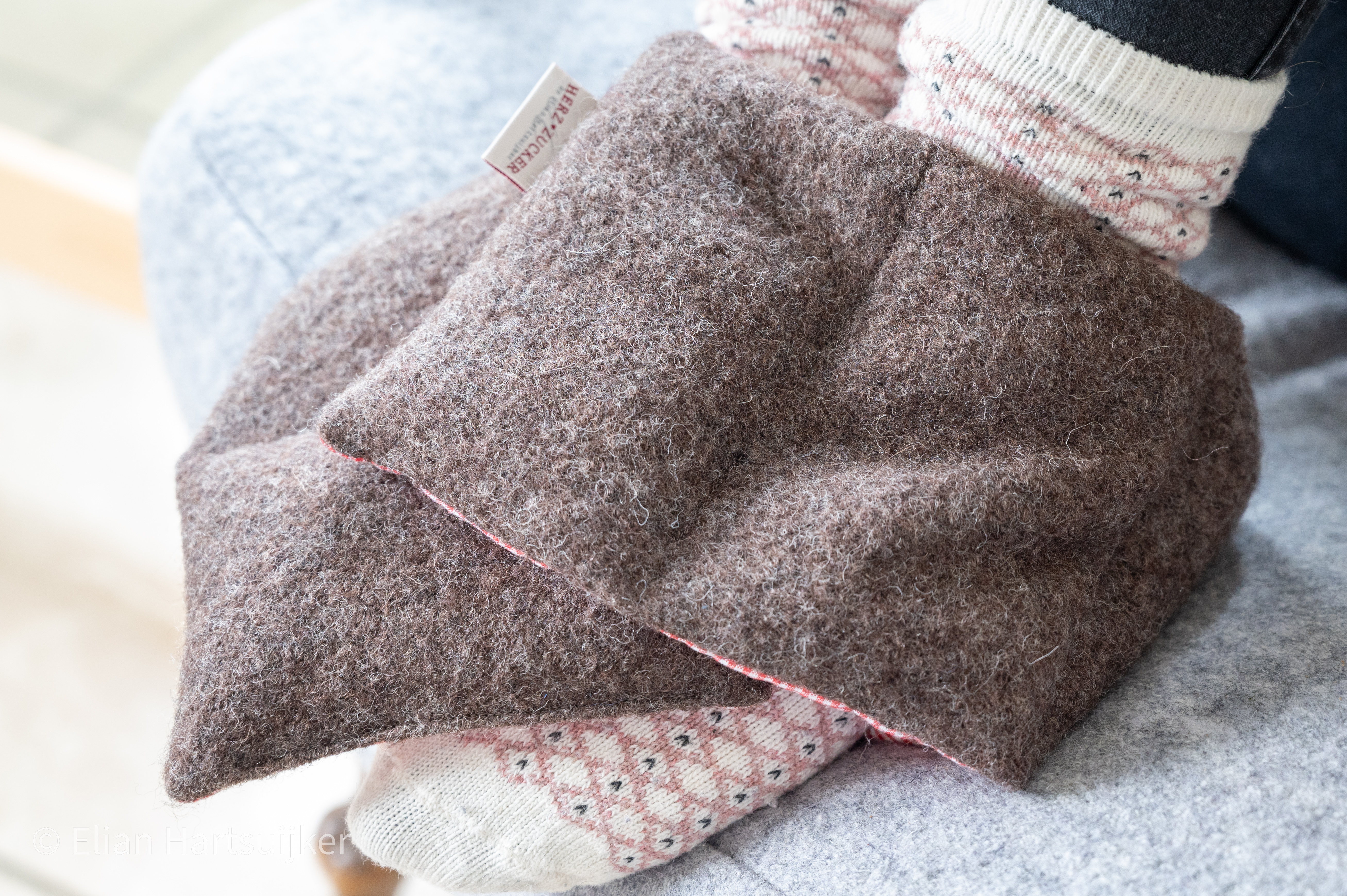 Das Walkkissen kann mit Wollwaschmittel ohne Weichspüler mit Handwäsche vorsichtig gewaschen werden, und anschließend gut austrocknen lassen.